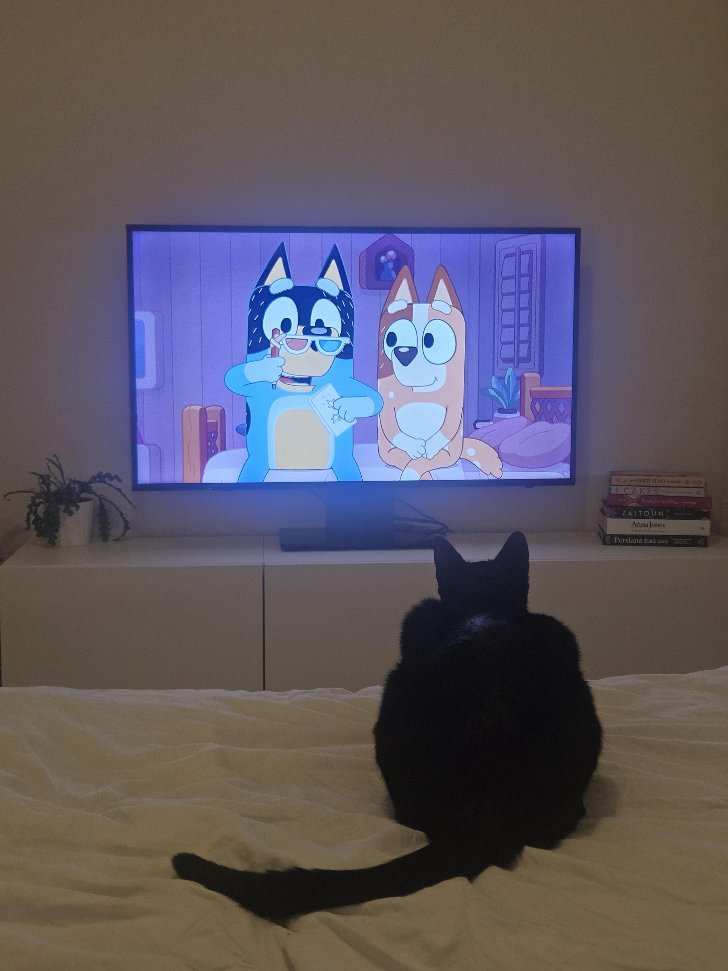 Gina on Nostr: TIL that cats like watching Bluey :blobcatsnuggle: #CatsOfMastodon #Caturday ...